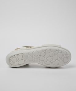 Sandalias blancas de piel y elástico para mujer con suelas XL EXTRALIGHT®.Las suelas redondeadas de nuestra sandalia Balloon añaden un toque divertido a este diseño ligero para mujer.