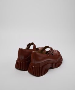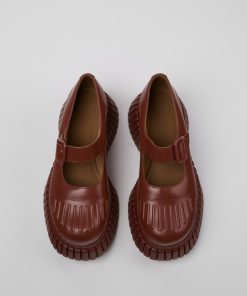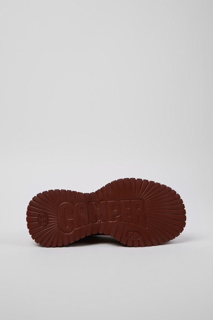 Zapatos para mujer en piel roja con plantillas OrthoLite® Recycled™.Pix BCN redefine el volumen y la comodidad con una atrevida plataforma con suela gruesa.