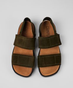 Camper Brutus Sandal Sandalia Con Dos Tiras De Nobuk Verdes Para Hombre | Hombre Zapatos