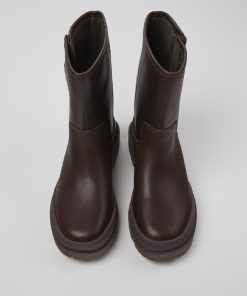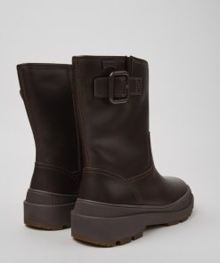 Botas para mujer de piel marrón con plantillas OrthoLite® Recycled™ y suelas de goma Michelin (27% natural).Un Camper original desde 1986 con un diseño urbano icónico. Brutus aporta durabilidad gracias a su cosido de 360° y cuenta con tecnología ligera.