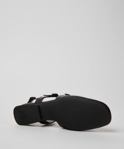 Zapatos semiabertos negros para mujer de piel vacuna con plantilla OrthoLite® Recycled™ y suelas de TPU (20% reciclado).Nuestra línea femenina Casi Myra se caracteriza por un diseño atemporal con una forma ligeramente cuadrada.