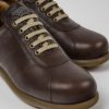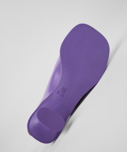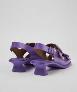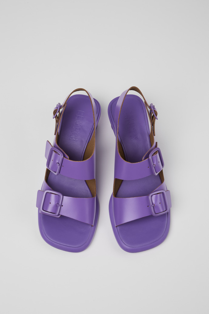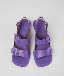 Sandalias con dos tiras de piel violetas para mujer, con plantillas OrthoLite® recicladas y suelas 100% goma.Dina es una de nuestras líneas de sandalias de tacón bajo y espíritu desenfadado. Su diseño femenino a la vez que robusto y resistente se identifica rápidamente con el estilo de calzado de Camper para mujeres. Su horma ancha y ligeramente cuadrada combina, en diferentes modelos, con el estilo artesanal de nudos y tiras cruzadas.