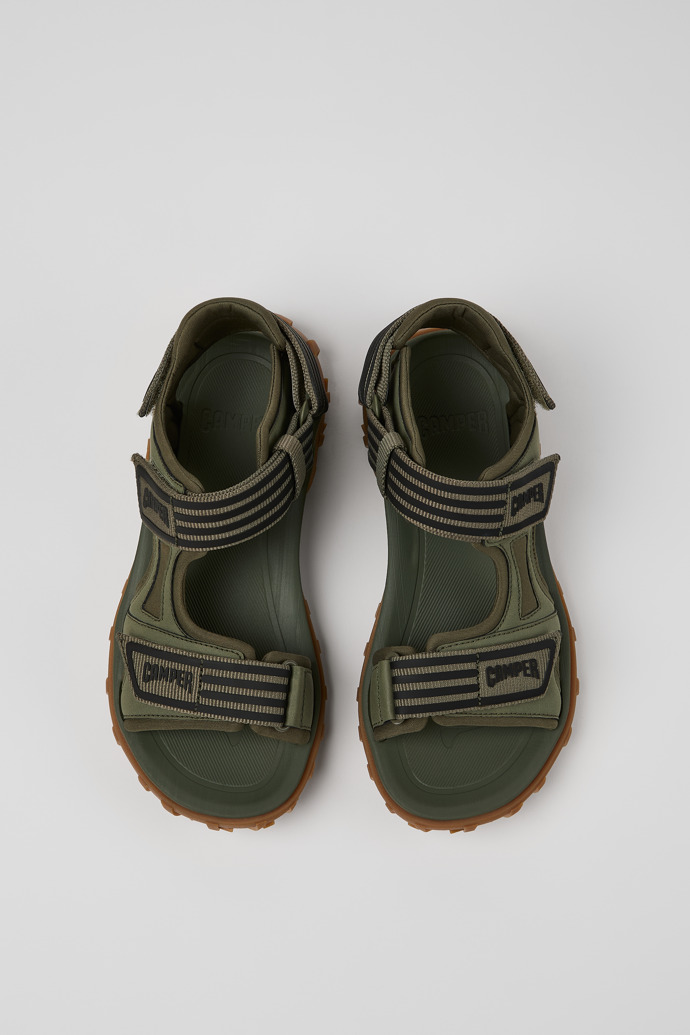 Sandalias verdes de piel para mujer con sistema de autocierre, entresuela de EVA y suelas Vibram.La sandalia Drift Trail combina un diseño distintivo con tecnología de rendimiento para el exterior, incluyendo una suela de goma Vibram y una plantilla anatómica acolchada Ortholite para un uso activo en verano.