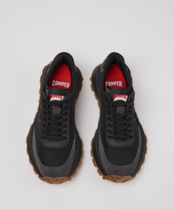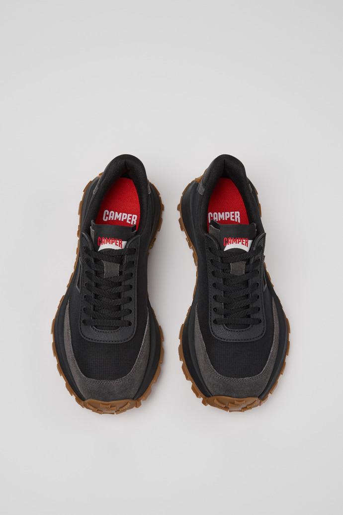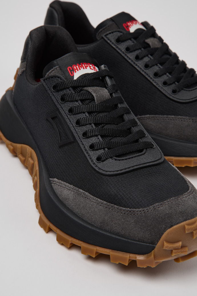 Sneakers negras y grises para mujer en poliéster reciclado y piel con plantillas OrthoLite® Recycled™, entresuelas de EVA y suelas Vibram (30% recicladas).Nuestro Drift Trail fusiona innovación de alto rendimiento con una estética vintage.