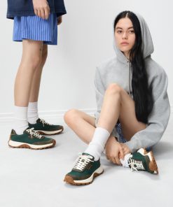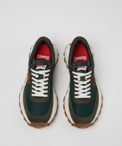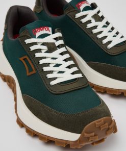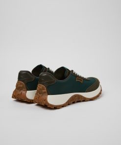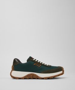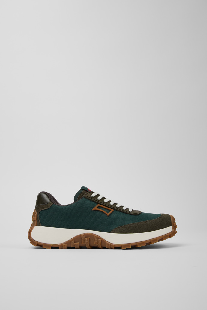 Sneakers verdes para mujer en PET reciclado, punto y piel, con plantillas OrthoLite® Recycled™, entresuelas de EVA y suelas Vibram Ecostep (30% recicladas).Nuestro Drift Trail fusiona innovación de alto rendimiento con una estética vintage.