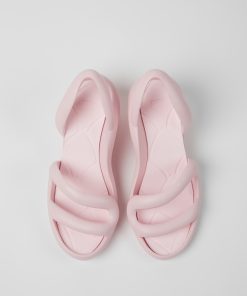 Sandalias rosa pastel unisex con suelas XL EXTRALIGHT® Organix™ (con un 30% de caña de azúcar biológica). Inspirada, como su nombre, en las cobras, Kobarah se envuelve en el pie igual que una serpiente. Su forma redondeada y tacón ancho marcan el estilo inconfundible de las sandalias femeninas de Camper y le dan un aire muy moderno y desenfadado. Desarrollada con materiales reciclables.