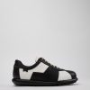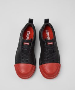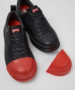 Sneaker para mujer en piel negra con plantillas de PU y suelas de EVA reciclado (20% reciclado).Junction Runner es una sneaker dos en uno personalizable, fabricada con materiales de primera calidad. Cada par incluye un par de punteras intercambiables; las punteras extra se venden por separado.