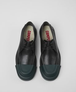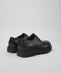 Zapatos para hombre en piel negra de origen responsable con punteras extraíbles, plantillas extraíbles OrthoLite® Recycled™ y suelas de goma (40% natural, 23% reciclada).Fabricado con los mínimos componentes y pegamento posibles, Junction es fácil de desmontar, lo que promueve un enfoque más circular en la fabricación de calzado.