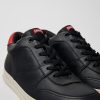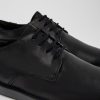 Zapatos para hombre en piel negra de origen responsable con punteras extraíbles, plantillas extraíbles OrthoLite® Recycled™ y suelas de goma (40% natural, 23% reciclada).Fabricado con los mínimos componentes y pegamento posibles, Junction es fácil de desmontar, lo que promueve un enfoque más circular en la fabricación de calzado.