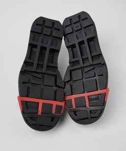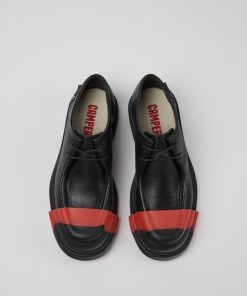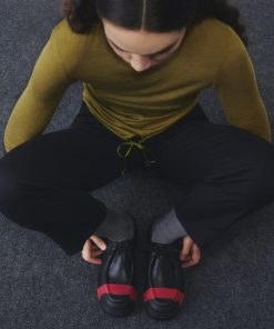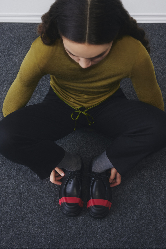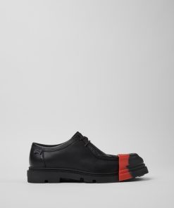 Zapato para mujer en piel negra de origen responsable con plantilla OrthoLite® Recycled™ y suela de goma con puntera (23% reciclada).Fabricado con los mínimos componentes y pegamento, Junction se desmonta fácilmente, lo que fomenta un enfoque más circular en la fabricación de calzado.