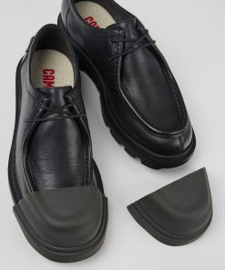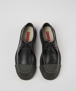 Zapato para mujer en piel de origen responsable, negro, con plantilla OrthoLite® Recycled™ y suela y puntera de goma (23% reciclada).Fabricado con los mínimos componentes y pegamento, Junction se desmonta fácilmente, lo que fomenta un enfoque más circular en la fabricación de calzado.
