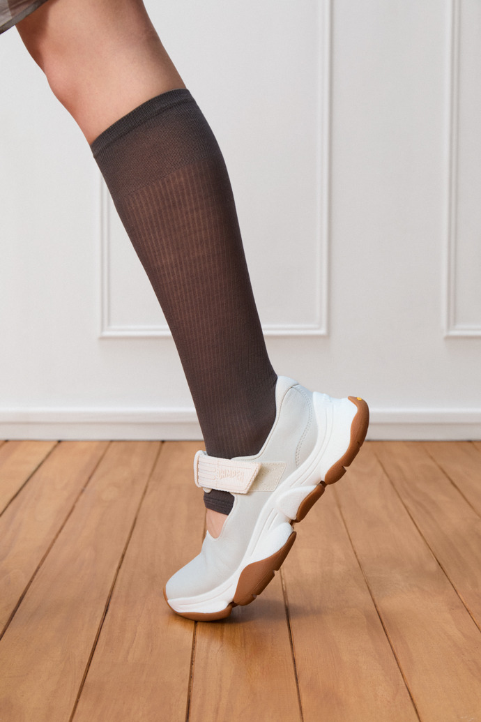 Empeine Piel vacuna y poliester recicladoColorBlancoSuela/CaracterísticasVibram Ecostep 30% recicladocorreas de autocierrePlantillaPlantilla reciclada OrthoLite®Forro91% Piel vacuna 9% poliéster reciclado