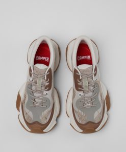 Sneakers grises y marrones de tecnología simplificada reciclada para hombre con plantillas OrthoLite® Recycled™, entresuelas ReXarge y suelas Vibram Ecostep (30% recicladas).Presentamos el Karst 2 de nueva generación, con una novedosa tecnología de espuma ReXarge, mejor acolchado y retorno de energía, además del agarre extremo Vibram.