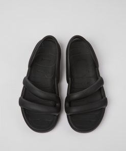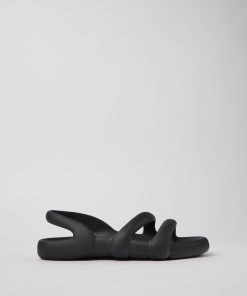 Sandalias negras para hombre con suela XL EXTRALIGHT® OrganixTM 3.0 (30% de componentes biocirculares).La versión plana del tacón Kobarah también está fabricada con materiales totalmente reciclables y conserva el volumen, la curvatura y su movimiento infinito.
