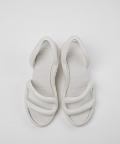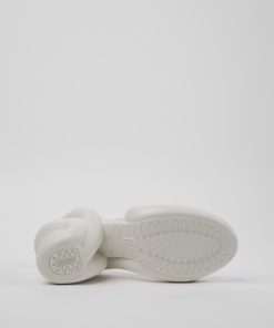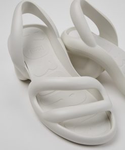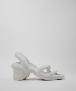 Sandalia XL EXTRALIGHT® blanca para hombre con plantilla de EVA.Inspirada en las curvas de una serpiente, Kobarah se diseñó para envolver el pie. Fabricada con materiales totalmente reciclables, su forma redondeada y su tacón ancho ofrecen una sandalia de tacón única con una estética desenfadada y contemporánea.