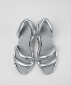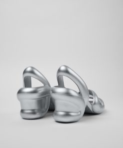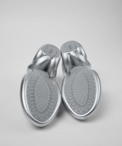 Sandalia XL EXTRALIGHT® plateada para hombre con plantilla de EVA.Inspirada en las curvas de una serpiente, Kobarah se diseñó para envolver el pie. Fabricada con materiales totalmente reciclables, su forma redondeada y su tacón ancho ofrecen una sandalia de tacón única con una estética desenfadada y contemporánea.