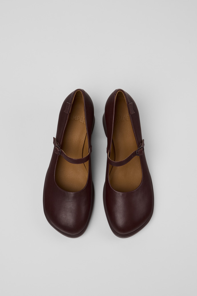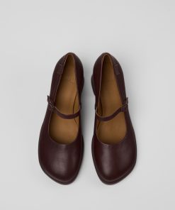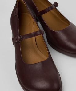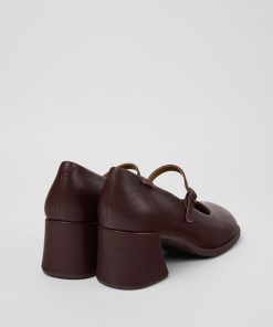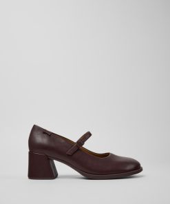 Mocasines burdeos para mujer de piel vacuna con plantillas OrthoLite® Recycled™ y suelas de goma y ABS.Kora es un tacón bajo de verano versátil y femenino, diseñado para el día a día, con empeines extremadamente suaves y una plantilla acolchada Ortholite® para mayor comodidad.