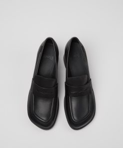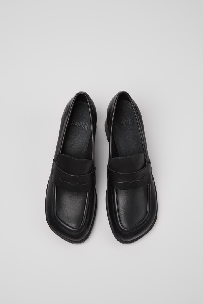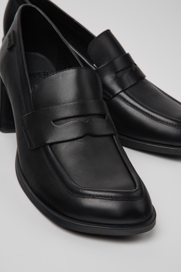 Mocasines negros para mujer de piel vacuna con plantillas OrthoLite® Recycled™ y suelas de goma y ABS.Kora es un tacón bajo de verano versátil y femenino, diseñado para el día a día, con empeines extremadamente suaves y una plantilla acolchada Ortholite® para mayor comodidad.
