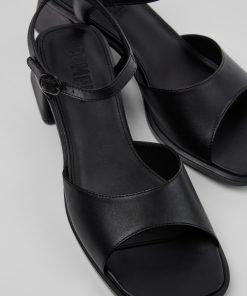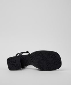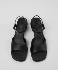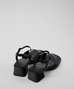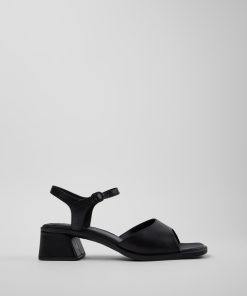 Sandalias para mujer en piel negra con plantilla OrthoLite® Recycled™ y suelas de goma y ABS.Kora es un tacón bajo de verano versátil y femenino, diseñado para el día a día, con empeines extremadamente suaves y una plantilla acolchada Ortholite® para mayor comodidad.