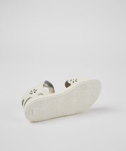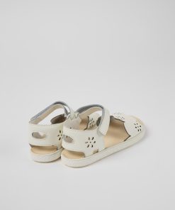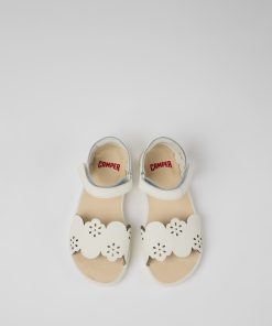 Sandalias blancas de piel para niña con sistema de autocierre y suelas 100% goma.Nuestra sandalia de niña Miko ofrece un divertido diseño semi-abierto lo bastante resistente como para aguantar cualquier travesura.