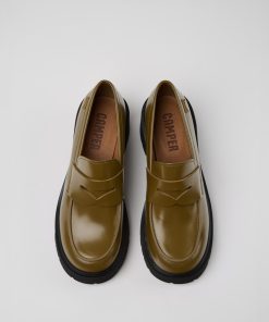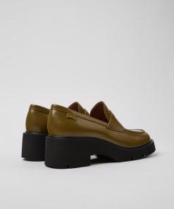 Mocasines verde de piel para mujer con plantillas OrthoLite® Recycled™ y suelas de EVA.Milah es un modelo voluminoso para el día a día, con una suela gruesa que le da un toque extra.