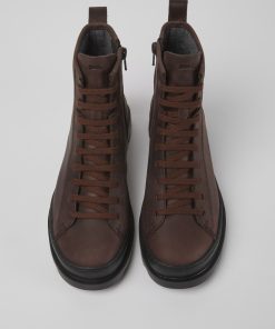 Botas de nobuk en color marrón con cordones y suelas EVA para mujer.Un modelo original Camper desde 1986 con un icónico diseño urbano. Brutus es duradero, gracias a la costura 360º, y cuenta con tecnología que le ofrece ligereza.