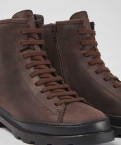 Botas de nobuk en color marrón con cordones y suelas EVA para mujer.Un modelo original Camper desde 1986 con un icónico diseño urbano. Brutus es duradero, gracias a la costura 360º, y cuenta con tecnología que le ofrece ligereza.
