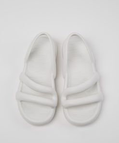 Sandalias en color blanco XL EXTRALIGHT® Organix™ 3.0 (30% de componentes biocirculares).La versión plana del tacón Kobarah también está fabricada con materiales totalmente reciclables y conserva el volumen, la curvatura y su movimiento infinito.