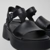Sandalias unisex de tacón en azul, con construcción de inyección directa, plantillas de EVA y suelas XL Extralight® Organix™ 3.0 con un 30% de componentes biocirculares.Inspirada, como su nombre, en las cobras, Kobarah se envuelve en el pie igual que una serpiente. Su forma redondeada y tacón ancho marcan el estilo inconfundible de las sandalias femeninas de Camper y le dan un aire muy moderno y desenfadado. Desarrollada con materiales reciclables.