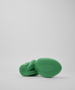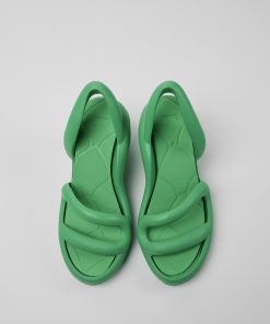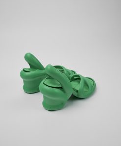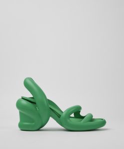 Sandalias verdes unisex con suelas XL EXTRALIGHT® Organix™ (con un 30% de caña de azúcar biológica). Inspirada en la curvatura de una serpiente, Kobarah se ha diseñado para envolver el pie. Confeccionada con materiales totalmente reciclables, su forma redondeada y tacón ancho la convierten en una sandalia de tacón única con una estética informal y contemporánea.