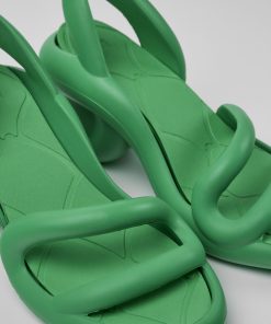 Sandalias verdes unisex con suelas XL EXTRALIGHT® Organix™ (con un 30% de caña de azúcar biológica). Inspirada en la curvatura de una serpiente, Kobarah se ha diseñado para envolver el pie. Confeccionada con materiales totalmente reciclables, su forma redondeada y tacón ancho la convierten en una sandalia de tacón única con una estética informal y contemporánea.