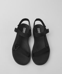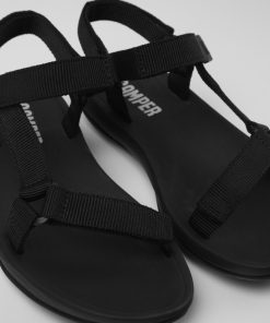 Sandalia negra para mujer. Tejido elaborado a partir de PET reciclado.Con su enfoque contemporáneo, nuestro modelo Match ofrece un ajuste ergonómico y una silueta deportiva.