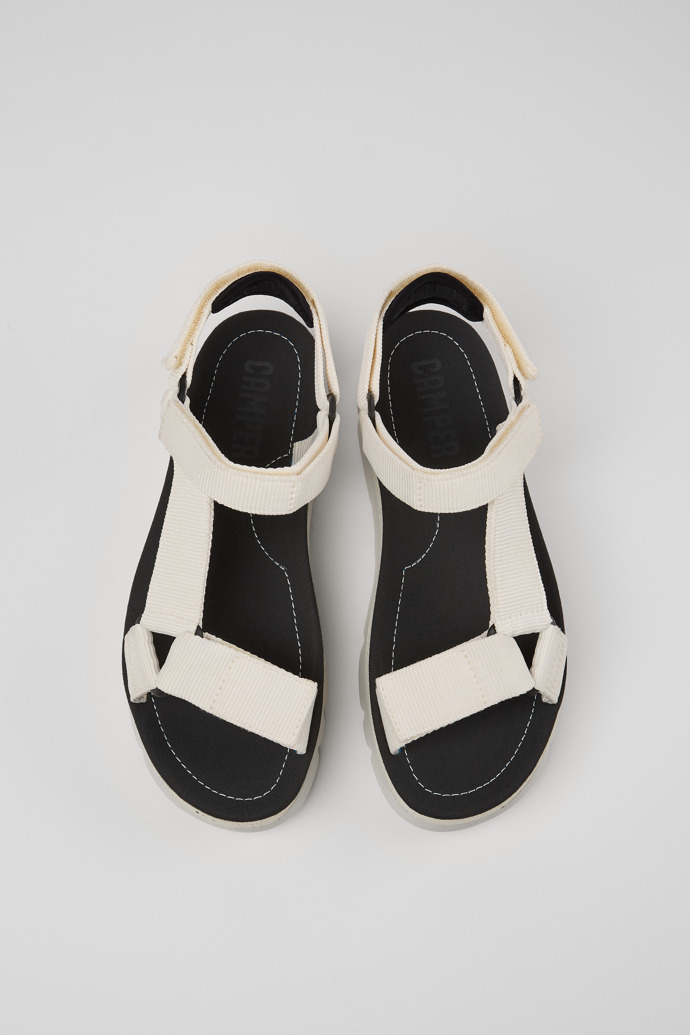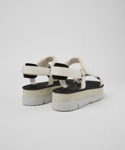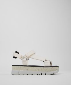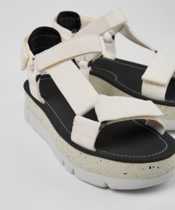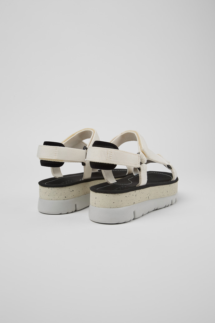 Sandalia blanca de tejido 100% PET reciclado para mujer y con cierre de velcro. Suela blanca con plataforma, de 51% EVA reciclada.A Little Better, Never PerfectNuestras sandalias Oruga Up están diseñadas para los días de verano y destacan por su característica suela gruesa, que aporta unos centímetros extra de altura y un look único.
