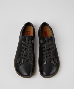 Zapato negro para mujer. Piel flor y suela de poliuretano termoplástico.Peu es un zapato para mujer con un diseño inspirado en la forma del pie. Una silueta única que proporciona todos los beneficios de caminar descalzo.