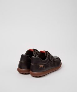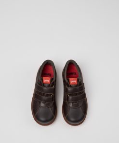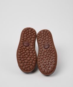 Camper Niñas Pelotas Zapatos Marrones De Piel Y Tejido Para Niños.