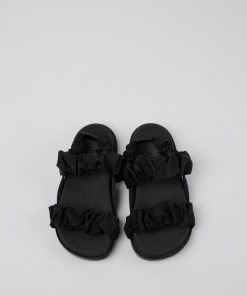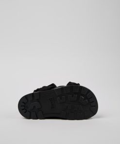 Sandalias para niños de piel negra y PET reciclado con plantillas de EVA y suelas de goma.Brutus para niños, con su robusto diseño urbano y un excepcional agarre, ofrece una gran durabilidad gracias a sus costuras 360°.