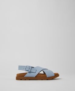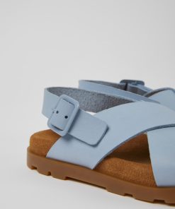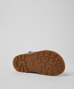 Sandalias azules de piel para niños con plantillas no extraíbles OrthoLite® Recycled™ y suelas de goma.El modelo Brutus para niños, con su robusto diseño urbano y su agarre excepcional es duradero gracias a la costura 360º.