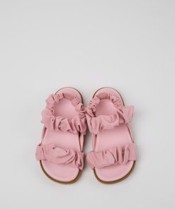 Sandalias rosas de piel y PET reciclado para niños, con plantillas de EVA y suelas de goma.Brutus para niños, con su robusto diseño urbano y un excepcional agarre, ofrece una gran durabilidad gracias a sus costuras 360°.