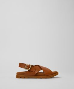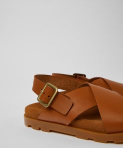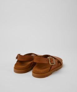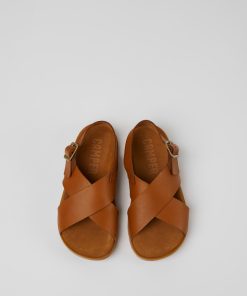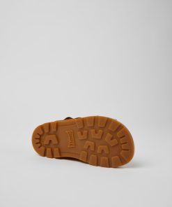 Sandalias marrones de piel para niños con plantillas no extraíbles OrthoLite® Recycled™ y suelas de goma.El modelo Brutus para niños, con su robusto diseño urbano y su agarre excepcional es duradero gracias a la costura 360º.