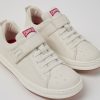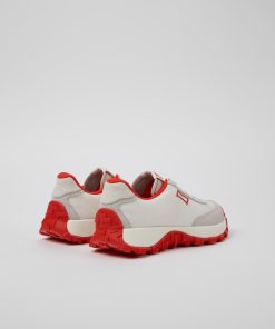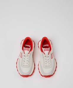Sneakers para niños en PET reciclado blanco y piel con plantilla OrthoLite® Recycled™, cordones elásticos, entresuela de EVA y suelas de goma.Inspirado en el trail running y la estética de las carreras de los 70, Drift Trail ofrece el máximo rendimiento y durabilidad—ahora en tallas pequeñas.