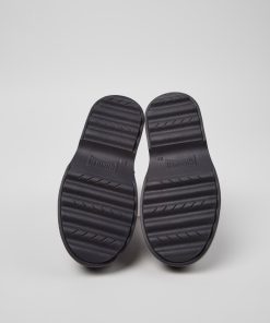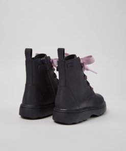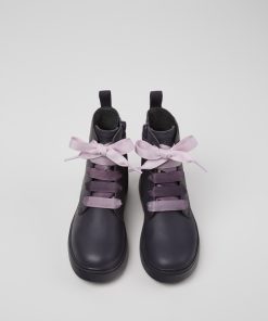 Botines para niños de piel morada con suelas de goma.Norte se caracteriza por un perfil clásico, voluminoso y robusto, con una suela de goma para un mejor agarre.