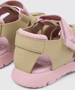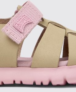 Sandalias para niños de piel y tejido multicolor, con autocierre y suelas de EVA.La gama de First Walkers presenta estilos flexibles y resistentes, diseñados para los pequeños cuando empiezan a dar sus primeros pasos. Descubre nuestra colección de zapatos cómodos para niños que se embarcan en la aventura de caminar.El ligero y flexible Oruga combina el distintivo estilo urbano de Camper con pieles y tejidos suaves.