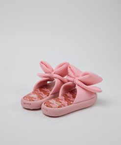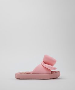 Sandalias para niños en PET reciclado rosa con plantilla de EVA y suelas de EVA.La versión para niños de Pelotas Flota mantiene el mismo diseño simple y minimalista, y su atrevido y redondeado volumen que se inspira en los objetos inflables.
