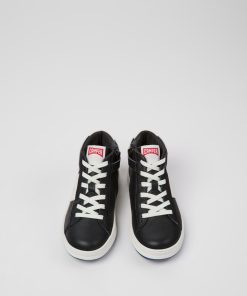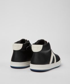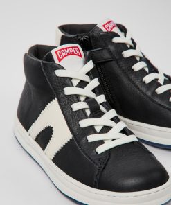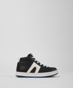 Sneakers para niños de piel en blanco y negro con plantillas extraíbles OrthoLite® Recycled™ y suelas de goma.Nuestras sneakers Runner para niños son una versión en miniatura de nuestro diseño deportivo original de 1992.
