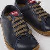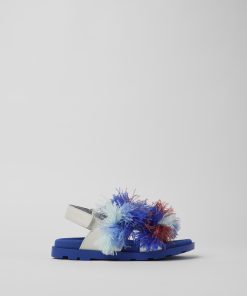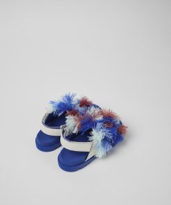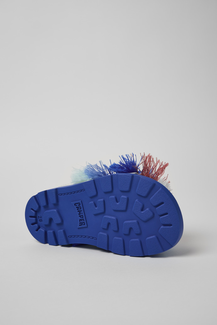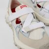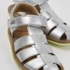 Sandalias de piel blancas para niños, con sistema de autocierre, plantillas de EVA y suelas 100% goma.En 1988, cuestionamos la idea de que ambos zapatos debían ser idénticos y diseñamos un par desigual con detalles asimétricos: nuestro icónico modelo TWINS.