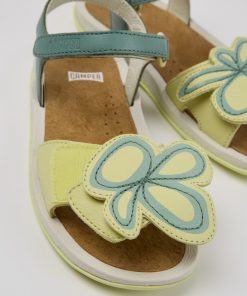 Sandalias multicolor de piel para niños, con autocierre y suelas de goma (20% reciclada).Nacido en 1988, nuestro concepto clásico TWINS, opuestos pero complementarios, desafía la idea de que los zapatos deben ser idénticos y sigue vivo en estos zapatos para niños que no hacen juego, pero forman una pareja realmente única.