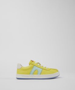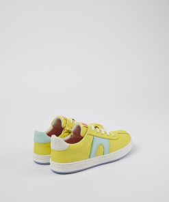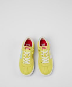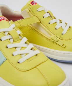 Sneakers de piel amarillas para niños, con cierres con cordón y cremallera, plantillas OrthoLite® Recycled™ y suelas de goma.En 1988, cuestionamos la idea de que ambos zapatos debían ser idénticos y diseñamos un par desigual con detalles asimétricos: nuestro icónico modelo TWINS.