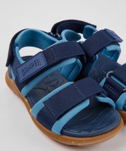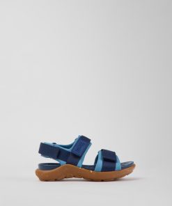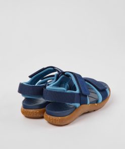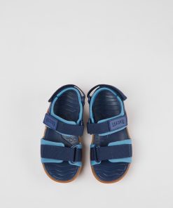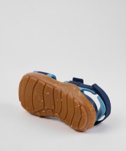 Sandalias azules de tejido para niños con plantillas extraíbles OrthoLite® Recycled™ y suelas de goma (20% recicladas).Diseñado para realizar actividades tanto por tierra como por agua, Wous está confeccionado con una piel protectora y un diseño único apto para cualquier aventura de verano.
