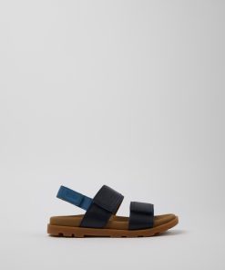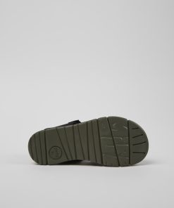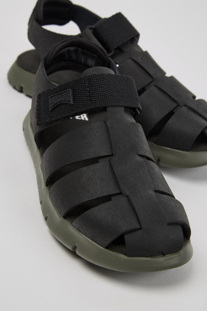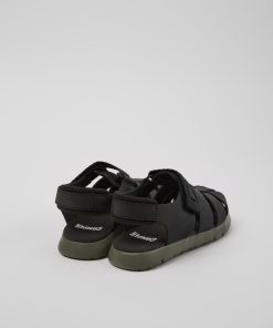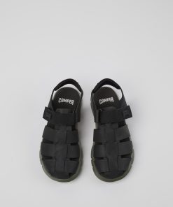Sandalias cerradas para niños en piel y tejido negros con autocierre y suelas de EVA.El ligero y flexible Oruga combina el distintivo estilo urbano de Camper con pieles y tejidos suaves.