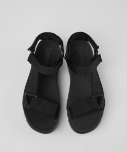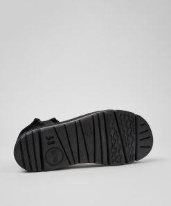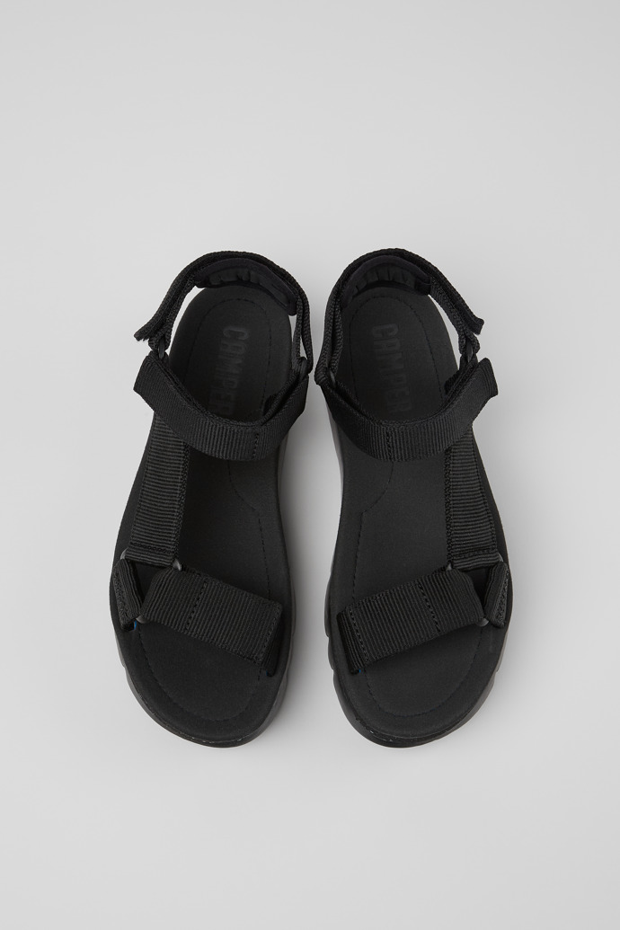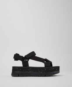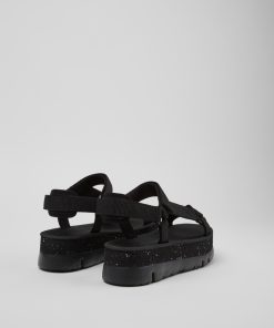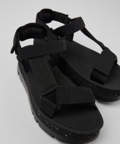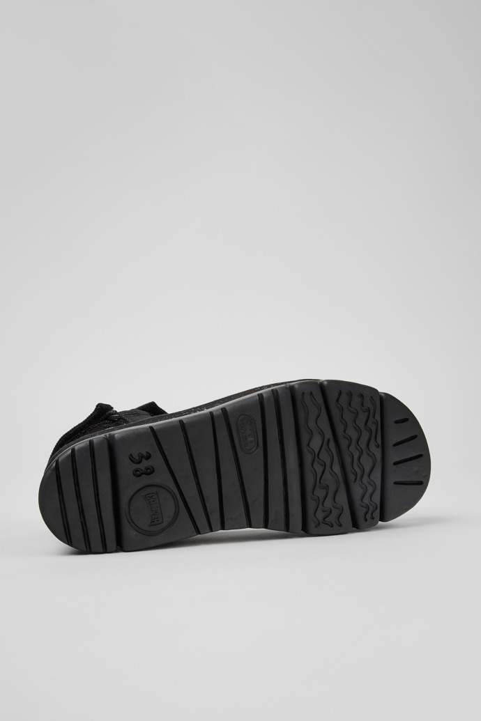 Sandalias de PET reciclado negras para mujer con entresuelas 100% EVA (20% recicladas), suelas XL EXTRALIGHT® (51% recicladas) y un sistema de autocierre. Nuestras sandalias Oruga Up están diseñadas para los días de verano y destacan por su característica suela gruesa, que aporta unos centímetros extra de altura y un look único.